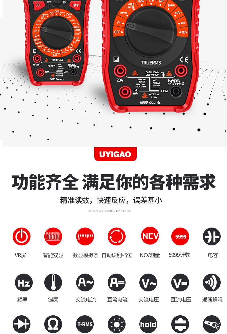 优仪高UA19E高精度手持式万用表多功能万用表数显电工带模拟条