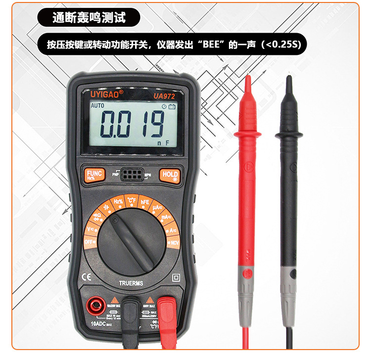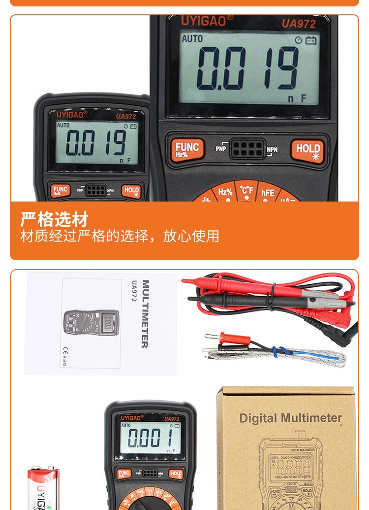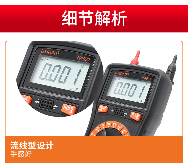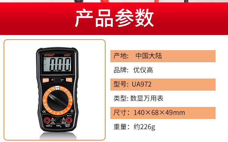 优仪高UA972数字万用表数显万用表电工家用维修电压表手持万用表
