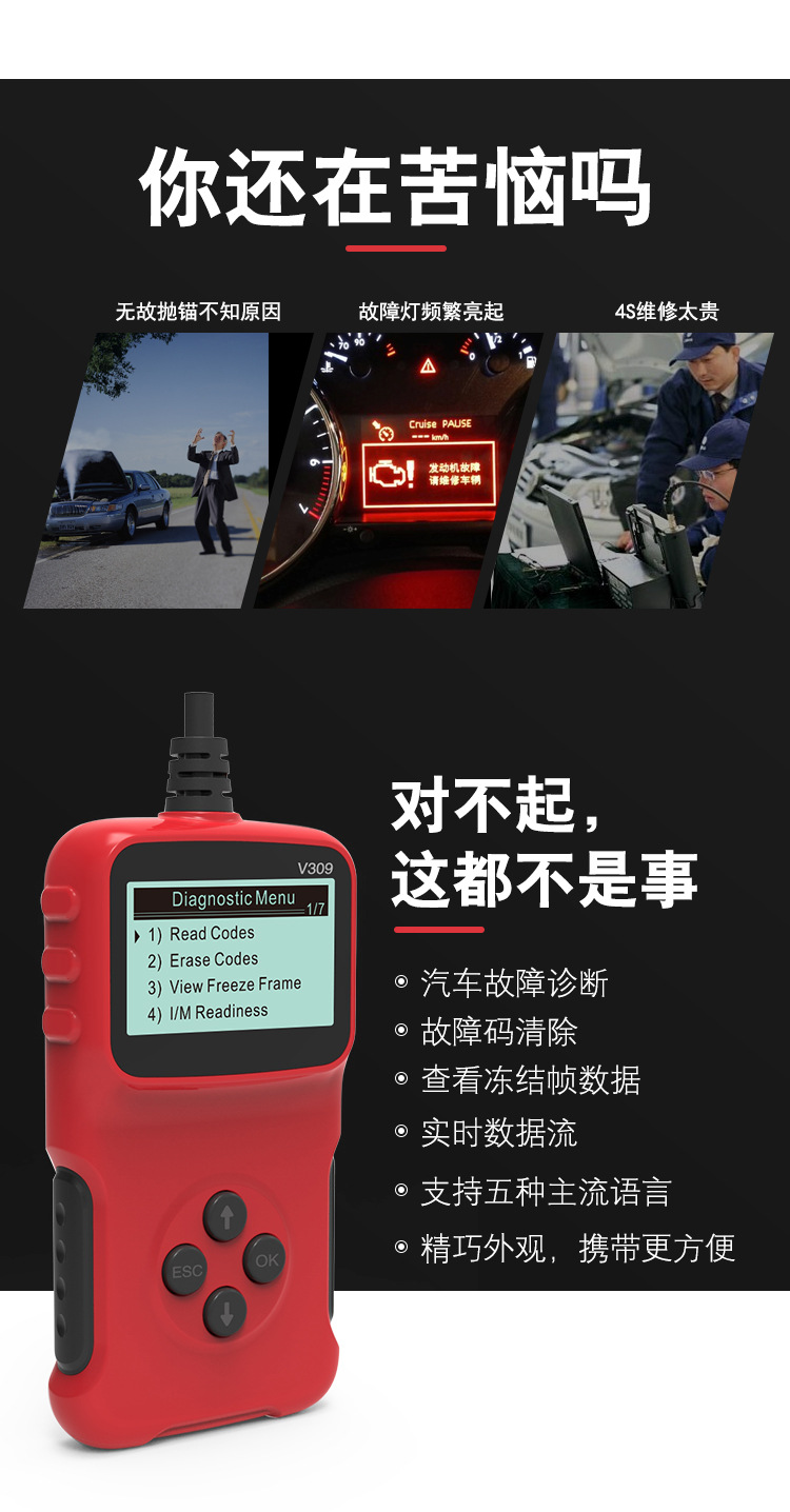 obd汽车故障检测仪elm327 obd2汽车诊断仪工具读码卡读码器厂家