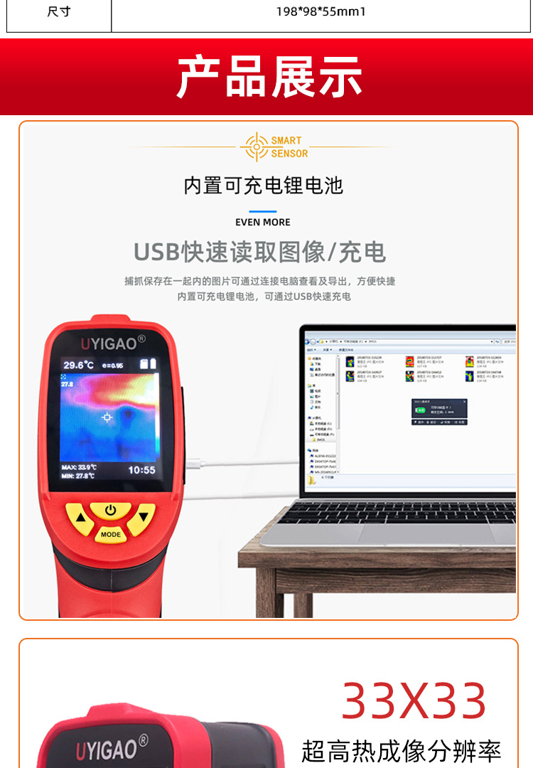 优仪高UA99手持式红外热成像仪 -20℃~380℃彩屏温度监控热成像仪
